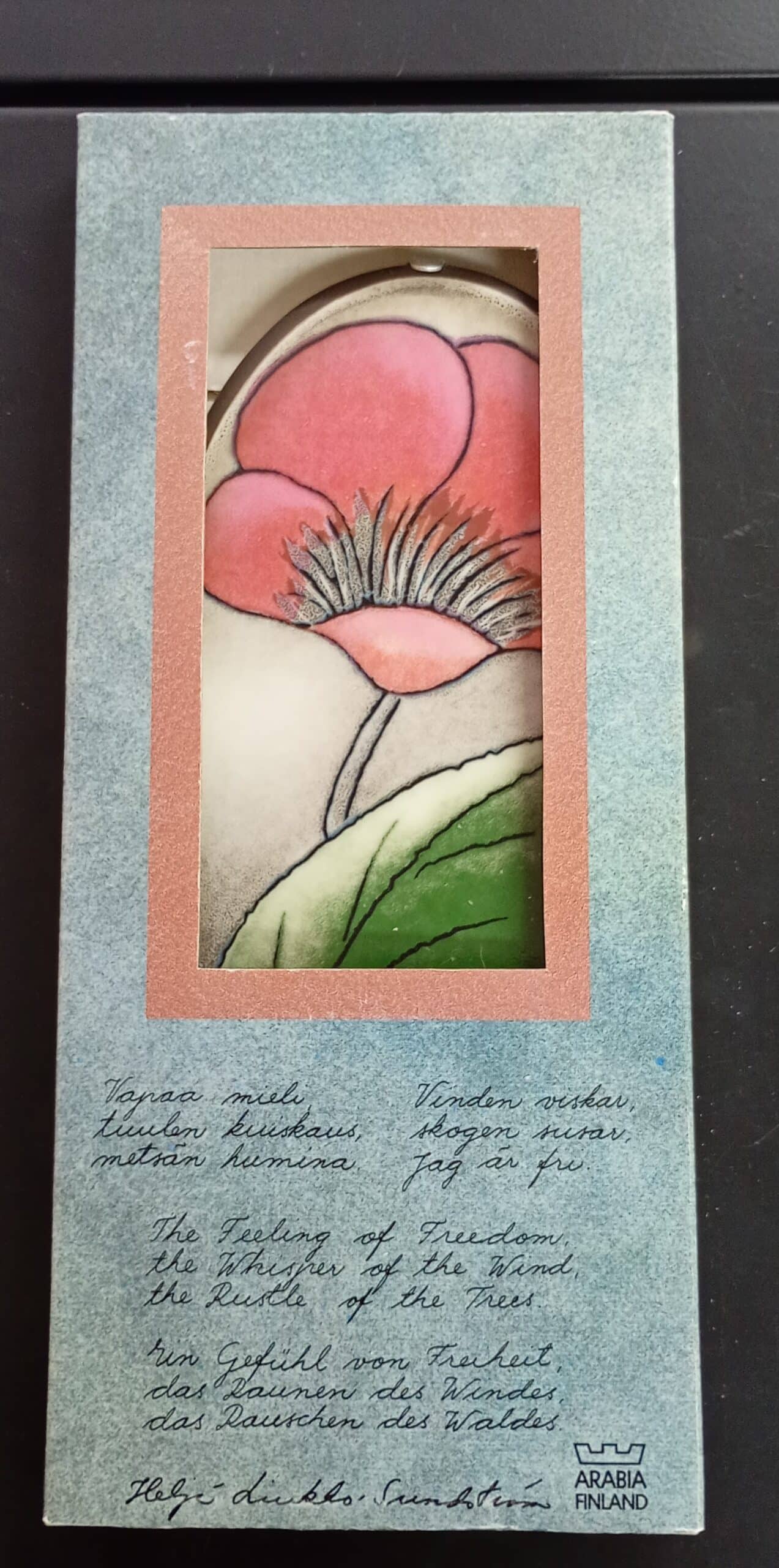 Arabia Finland keraaminen seinätaulu – kukka-aihe ja runoteksti