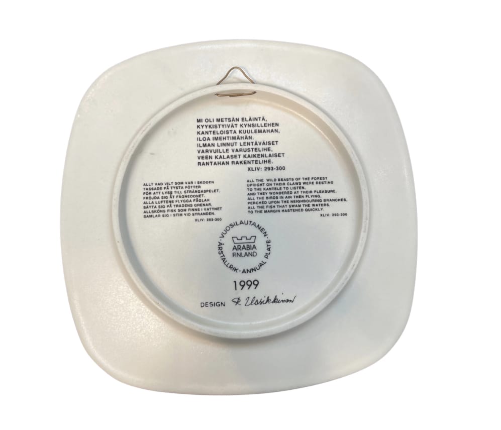 Vuoden 1999 lautanen on erityinen, sillä se kuuluu Arabian Kalevala-sarjan loppupään lautasista ja on yksi Uosikkisen viimeisistä suunnittelemista Kalevala-aiheisista teoksista.